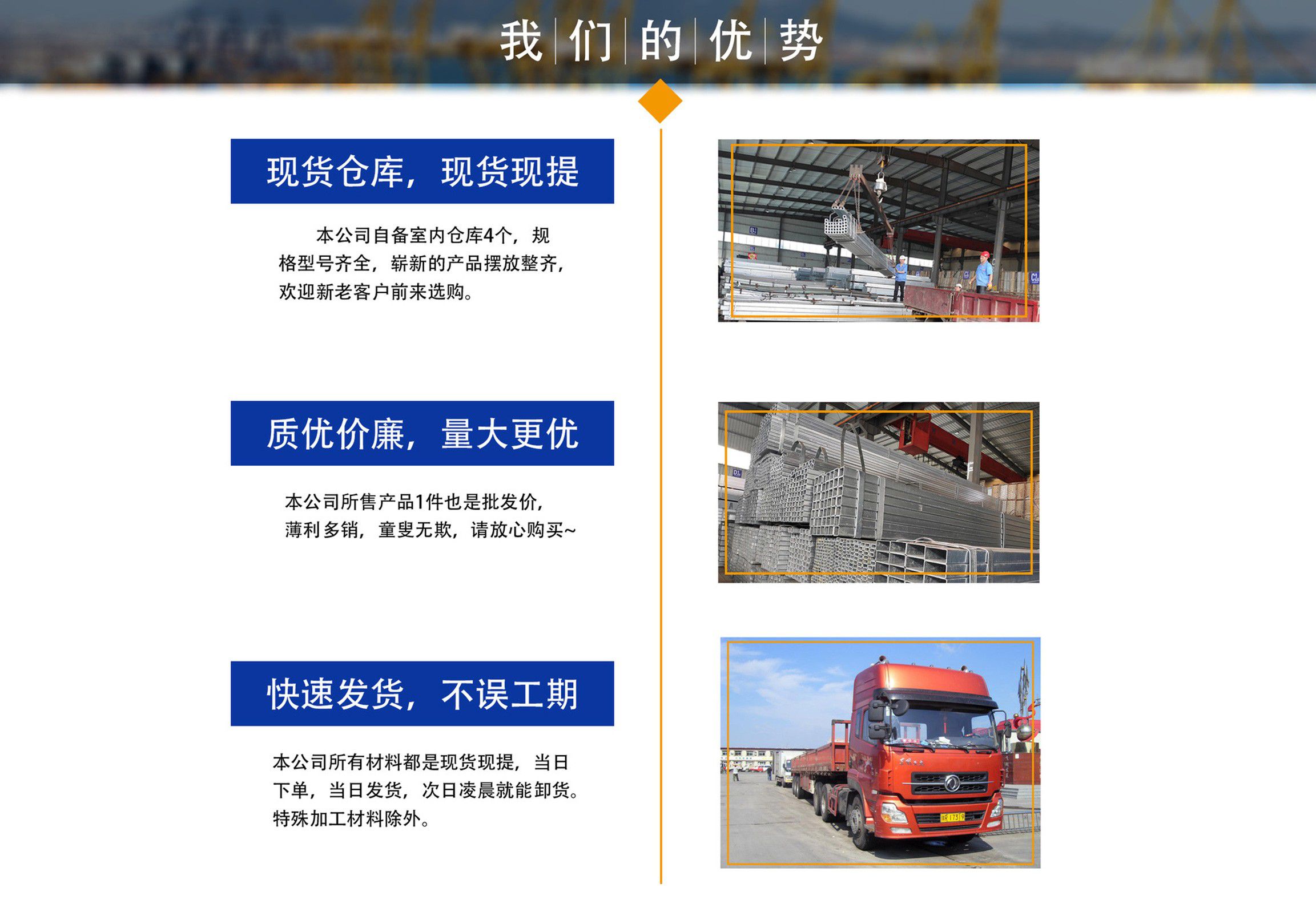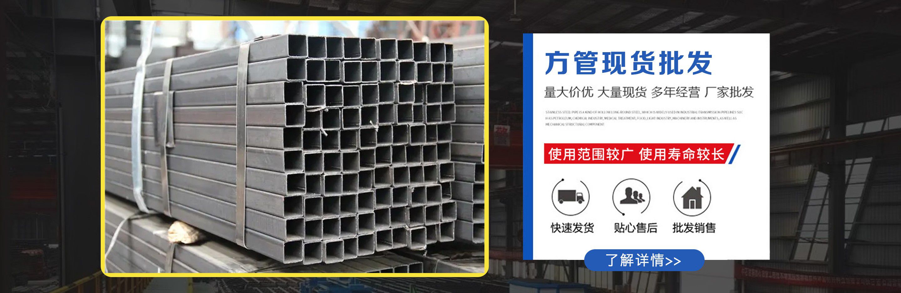 天津鍍鋅方管廠位于天津市靜海大邱莊工業(yè)區(qū),交通便利,地理位置優(yōu)越。我廠占地面積近9000平方米,注冊資金1000萬元,主要從事鍍鋅方管,鍍鋅方矩管,熱鍍鋅方管,鍍鋅方管廠家等產(chǎn)品的生產(chǎn)及銷售,現(xiàn)生產(chǎn)設備已擴大到六條,年生產(chǎn)量十萬噸左右占地面積近兩萬平米。銷售網(wǎng)絡遍及全國,受到廣大用戶認可。公司恪守以誠信為本,立業(yè)為眾的經(jīng)營理念,以可靠的質(zhì)量、合理的價格、優(yōu)質(zhì)的服務、卓絕的信譽、期待您的關(guān)注和支持。  公司庫存量大,材質(zhì)規(guī)格齊全,沒有規(guī)格及特殊規(guī)格材質(zhì)方管可及時定貨生產(chǎn),我公司經(jīng)營方式靈活,批零兼營、一支起售,并可為客戶辦理鐵路、公路運輸,7*24小時為您服務,歡迎新老客戶來電垂詢。  公司一直堅持“以質(zhì)量求生存,以產(chǎn)品求發(fā)展,以信譽保合作,以服務贏客戶”的經(jīng)營方針,客戶遍及大江南北,獲得了良好的聲譽與回報,在以后的發(fā)展歷程中,我們愿與廣大客戶攜手并進,共創(chuàng)輝煌。  熱忱歡迎新老客戶蒞臨指導、洽談業(yè)務!...